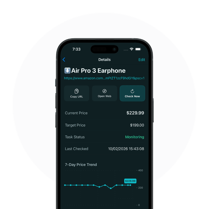 Monitor every 2 hours. Receive push notifications when the price meets your target or the product/booking becomes available. Unsubscribe any time.